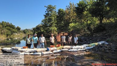 बिवळ येथे श्रमदानातून नार नदीवर वनराई बंधाऱ्याची उभारणी