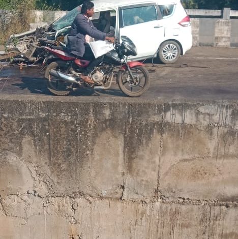 या अपघाताबाबत मिळालेल्या माहितीनुसार, उमराणे येथील माऊली मेन्स वेअरचे संचालक गणेश बाजीराव पगारे हे पत्नी प्रतिभा यांच्यासह कार क्र. एम.एच.-१५-बी.एफ.-८८१४ ने प्रतिभा यांचा चुलतभाऊ विजय जाधव यांच्या साखरपुड्यासाठी मालपूर-कासारे येथून विजय, त्यांची आई प्रमिला जाधव, महेंद्र जाधव, आणि संकेत जाधव यांना घेऊन सुरत येथे गेले होते. दुपारी साखरपुड्याचा कार्यक्रम संपन्न झाल्यानंतर रात्री सुरतहून परत येत असताना, मध्यरात्री सुमारे एक वाजेच्या सुमारास साक्री तालुक्यातील कातरणी गावाजवळ चालकाचे नियंत्रण सुटल्याने भरधाव कार डिव्हायडर तोडून पुलाला जावून धडकली.