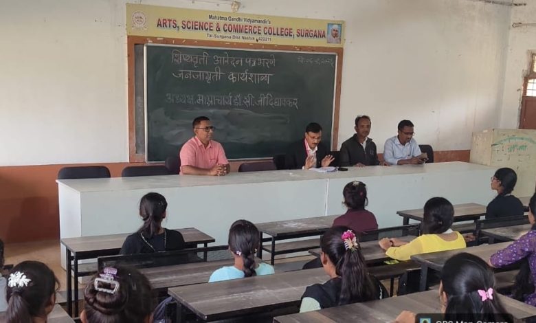 महात्मा गांधी विद्यामंदिर संचलित कला, विज्ञान व वाणिज्य महाविद्यालयात गोर-गरीब व गरजू विद्यार्थ्यांना शिक्षणासाठी केंद्र शासनाच्या विविध शिष्यवृत्तींची माहिती व्हावी, या उद्देशाने शिष्यवृत्ती जनजागृती व मार्गदर्शन कार्यशाळेचे आयोजन करण्यात आले. ही कार्यशाळा महाविद्यालयाचे प्राचार्य डॉ. सी. जी. दिघावकर यांच्या मार्गदर्शनाखाली यशस्वीपणे संपन्न झाली.